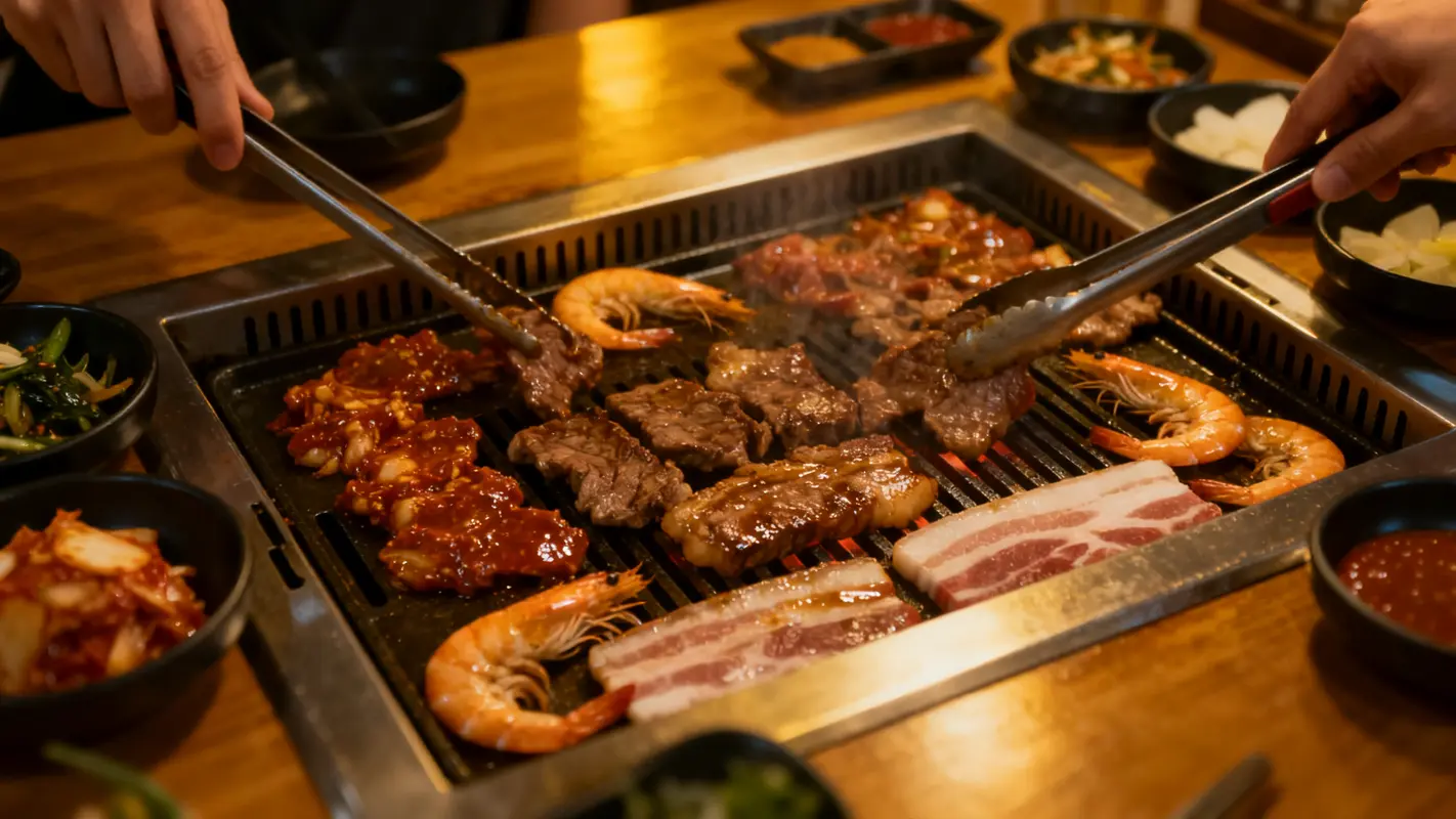Le secret de ce succès, c’est le format même du barbecue coréen à volonté, pensé pour offrir un maximum de liberté. Ici, aucun plat imposé, aucun timing serré, aucun service dirigiste. L’élément central, c’est la plaque de cuisson intégrée à la table, qui permet de griller vous-même vos aliments. C’est cette autonomie totale qui transforme le repas en expérience vivante.