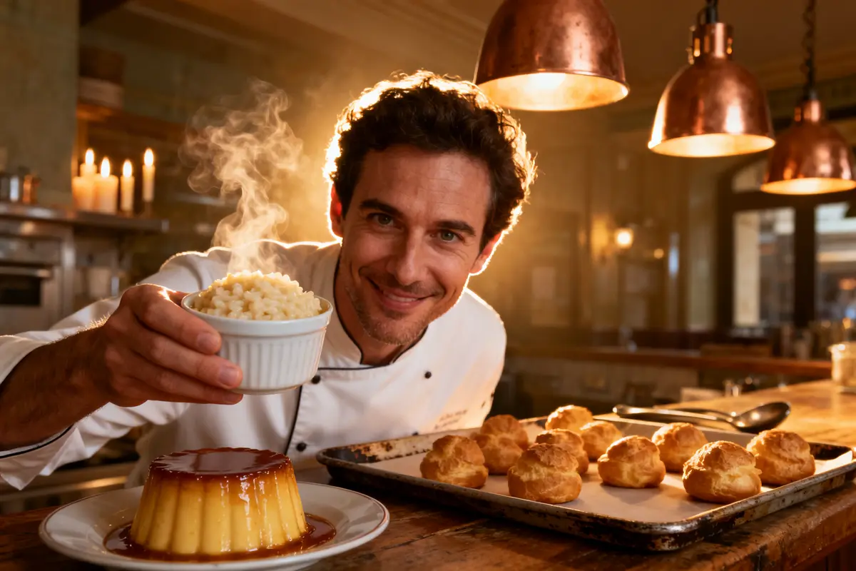 Dans une cuisine de brasserie, le chef réalise souvent ce dessert à partir de trois éléments : riz rond, lait entier et vanille. Cela donne une texture plus chaleureuse qu’un produit préparé en usine.