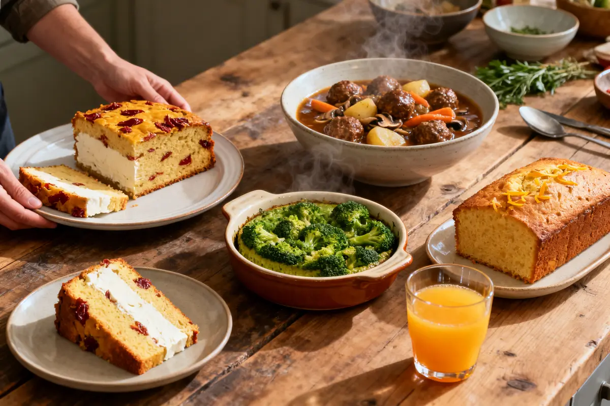 Ce cake se déguste aussi bien tiède que froid. Il convient pour un déjeuner léger, un dîner express ou même un apéritif improvisé. Vous pouvez l’accompagner d’une salade verte ou de crudités pour un repas complet.