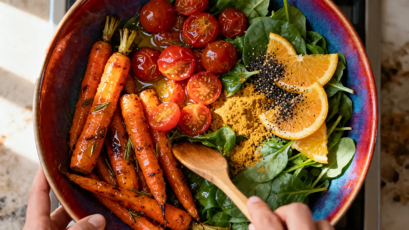 Les associations bénéfiques peuvent s’intégrer facilement dans différents styles de cuisine. Pour les caroténoïdes, privilégiez les légumes comme le potiron, la patate douce, les épinards ou les tomates. Les intégrer dans des plats mijotés, des soupes ou des poêlées vous permet de profiter du rôle de la chaleur et des graisses.